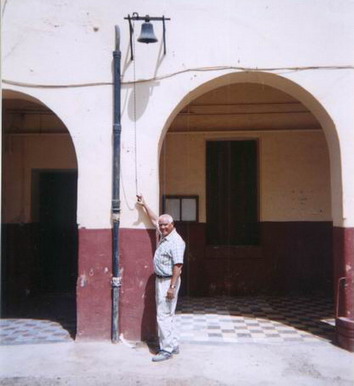 C�t� entr�e des profs, au milieu juste au dessus du porche la cloche de
